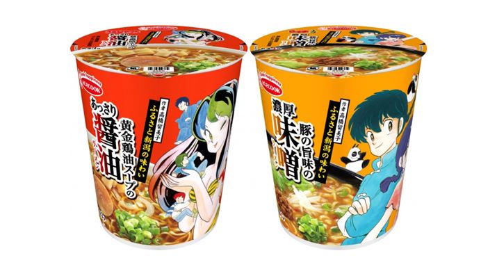 今なおファンの多い、高橋留美子原作の人気漫画「うる星やつら」と「らんま1/2」。作者である高橋留美子氏のふるさと、新潟市で愛され続けているご当地ラーメンを再現したのが、この「高橋留美子ふるさとの味わい」シリーズのカップ麺です。パッケージに「うる星やつら」のラムちゃんを描いた「あっさり醤油ラーメン」は、鶏の風味が香る黄金鶏油スープで、あっさりながらも奥深い味わい。「らんま1/2」の早乙女乱馬を描いた「濃厚味噌ラーメン」は、豚と香味野菜の旨みが利いた濃厚でコクのある味わいが特徴的です。