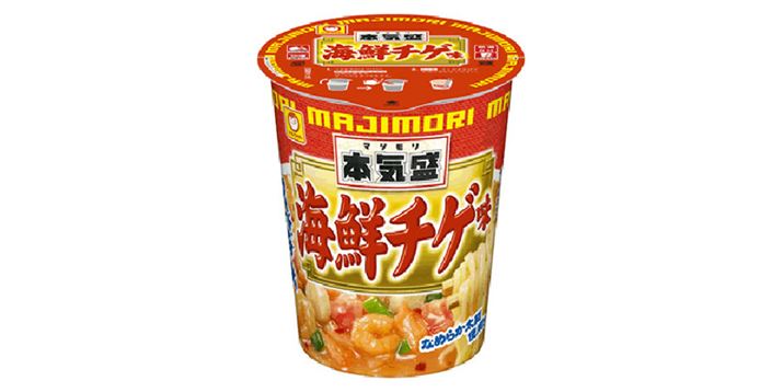 東洋水産の「本気盛(マジモリ)」シリーズは、ボリュームのある「大盛」麺重量、「濃い系」スープ、「がっつり」具材が特徴の縦型ビッグカップ麺ブランド。今回発売する「本気盛 海鮮チゲ味」は「本気盛」という名にふさわしく、シーフード具材(かに風かまぼこ、ほたて風かまぼこ、えび)とフリーズドライのキムチをたっぷりと使用し、具材の存在感が際立つカップ麺に仕上げています。スープは、味噌をベースに魚介の旨味を利かせた海鮮キムチチゲ味で、丸刃で切ったなめらかな太麺との相性もよさそう。