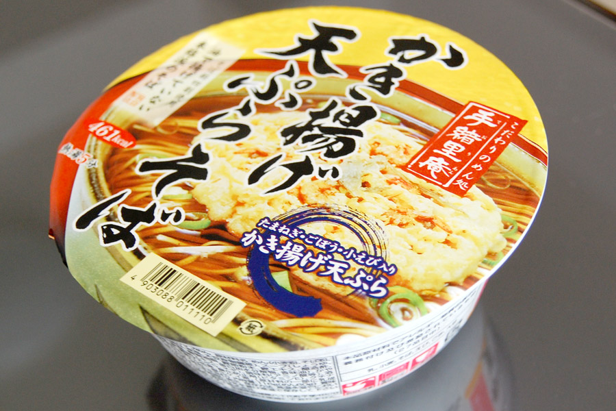そこでさっそく、茨城県で発売されているカップ麺を探してみたところ、「かき揚げ天ぷらそば」(ヤマダイ)が見つかりました。まずは一品、これで決まりです。