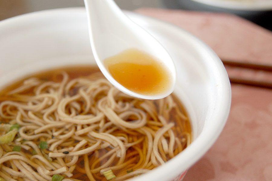 スープは、関東風の醤油味。鰹節の出汁が効いていて、非常にオーソドックスな味です。駅の立ち食いそば屋などで食べる、あの味に近いかも。目を閉じると、電車が近づいてくる音まで聞こえてきそうです。