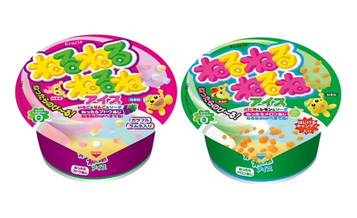 「テーレッテレー!」というCMでおなじみ、あの「ねるねるねるね」が発売30周年を迎え、「ねるねるねるねアイス」になりました。今回発売されるのは「ブドウ味」と「メロン味」。ブドウ味には「いちご味」「りんご味」「ソーダ味」が、メロン味には「バニラ味」「レモン味」「ソーダ味」のアイスが入っていて、あわせて「ねりねり」すると、それぞれの味に変わります。練ったあとにスプーンで持ち上げると長く伸びるという点も、従来の「ねるねるねるね」と同じ。ブドウ味には「カラフルラムネ」、メロン味には「はじけるキャンディ」のトッピングがついています。