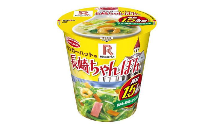 今週は、有名店が監修した「コラボカップ麺」の新商品が目白押し! 1つめは、長崎ちゃんぽんでおなじみ「リンガーハット」とコラボした「タテロング リンガーハットの長崎ちゃんぽん」です。「リンガーハット」は、500店舗以上を展開する長崎ちゃんぽんの専門店。2009年10月以降、野菜を100%国産化するなど、具材に関して強いこだわりがあります。今回のコラボカップ麺にも、実店舗と同様に、キャベツやもやしなどすべて国産野菜を使用。さらに、従来のシリーズ製品と比べて、野菜の量が1.5倍も増量されています。スープは複数のポースエキスを配合し、まろやかな口当たりのとんこつ風味。さらに、別添のオニオンとごまラー油を途中で加えれば、最後まで飽きずに美味しく食べられるのもポイントです。