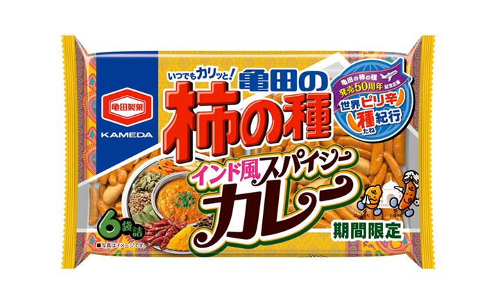 1966年、「亀田の柿の種」がピーナッツ入りとして発売されました。発売50周年を記念して企画された「世界ピリ辛種紀行」シリーズ第1弾は、2015年1月に発売された「182g 亀田の柿の種 シラチャーソース味」(2016年7月までの期間限定)。そして第2弾は、3月28日から4月末までの期間限定販売となる「182g 亀田の柿の種 インド風スパイシーカレー 6袋詰」です。14種類のスパイスとチキンの旨みが加わったオリジナルのカレー味は、柿の種との相性も抜群。スパイスの華やかに広がる香りと、後を引くピリッとした辛さがクセになり、つい何度も手が伸びてしまいそうです。販売期間はわずか1か月! 気になる人は、お早めに。