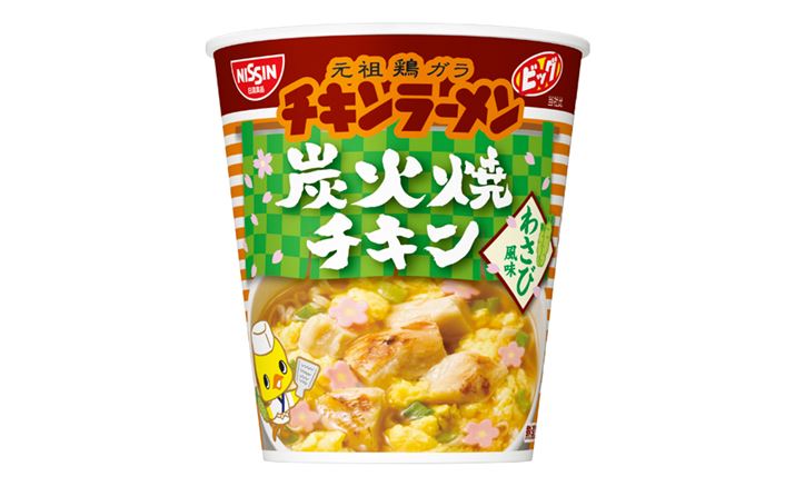 「チキンラーメン」は、1958年8月25日に発売された世界初のインスタントラーメン。2016年で58周年を迎えるロングセラーブランドです。今回新たに発売するのは、わさびの風味を効かせた「チキンラーメンビッグカップ 炭火焼チキン わさび風味」。具材は、ゴロっと大きく食べ応えのある炭火焼チキンと、ふんわりとしたかきたま、春らしい花形かまぼこと彩りのいいネギ。国産チキンを100%使用したローストしょうゆの元祖鶏ガラスープに、別添の練りわさびを加えることで、ひと味違った爽やかな風味を楽しめます。