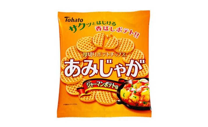 ポテトチップスに求められるのは、味の美味しさに加え、サクッとした独特の食感ではないでしょうか。東ハトの「あみじゃが」は、独自の製法によって、ポテトの生地をあみ状に厚切りカット。このあみ状カットのおかげで、見た目の楽しさはもちろん、厚切りなのにサクッとはじける心地よい食感を実現しました。味は、肉の旨みをベースにオニオンなどの野菜の旨みやチーズのコクを加えて、ジャーマンポテトらしい風味を再現。ガーリックの香りがクセになり、つい何度も手が伸びてしまうスナックです。