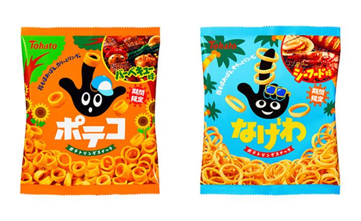 「ポテコ」と「なげわ」は、指にはめて食べられるユニークなリング形状に加え、独特の食感とポテトの旨味による味わいが人気のスナック菓子。そんなポテコとなげわの期間限定フレーバーとして、「ポテコ・バーベキュー味」と「なげわ・シーフード味」が5月23日に発売されます。ポテコ・バーべキュー味は、肉と野菜の旨味を生かした醤油ベースの甘辛いバーベキュー味。なげわ・シーフード味は、バター風味で魚介の旨味を引き立てた塩だれベースのシーフード味となっています。いずれも、夏にピッタリのスナックです。