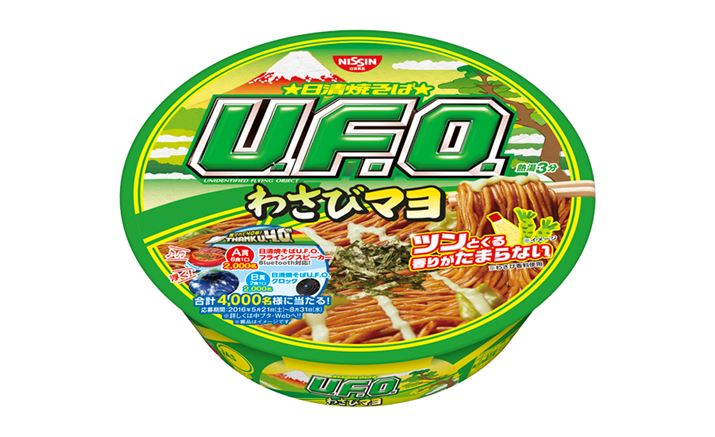 1976年から続く、インスタント焼きそばのロングセラー「日清焼そばU.F.O.」。なかでも1997年3月に初めて登場し、2011年と2013年に再販売された「わさびマヨ焼そば」は、根強い人気があります。今回、そんなファンの声に応えて、わさびマヨ味が再度復活。濃厚な香りと豚肉を炒めた旨みやコクが特徴の「やみつき濃厚エクストリームソース!」と、鼻にツンとくるわさびマヨネーズの絶妙なコンビネーションが、ちょっと和風で刺激的な味わいを生み出します。別添のきざみ海苔を振りかけて、召し上がれ。