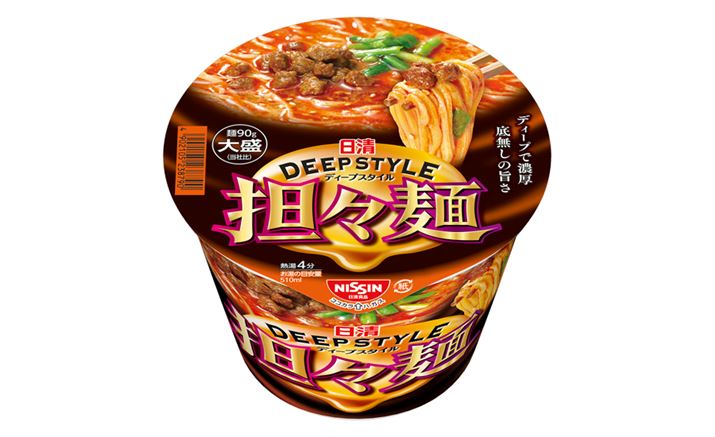 「ディープで濃厚、底なしの旨さ」がコンセプトの大盛カップ麺ブランド「日清 DEEP STYLE」。シリーズ第1弾として、芝麻醤(チーマージャン)をたっぷり効かせた濃厚スープの「日清 DEEP STYLE 担々麺」が登場します。芝麻醤、すりごま、炒りごまをぜいたくに使用した濃厚な担々スープに、噛みごたえのあるモチモチとした食感の中太麺を合わせて、上質な味わいの一杯に仕上げました。内容量は146gで麺が90gと、食いしん坊も大満足の大盛サイズです。