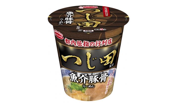 都内屈指の人気ラーメン店として、2015年11月には大阪への出店も果たした「つじ田」。そのつじ田が監修した「魚介豚骨らーめん」は、豚骨をベースに鶏や魚介の旨みが溶け込んだ濃厚なスープが特徴。弾力となめらかさを兼ね備えた太麺がよくからみ、麺をすするごとに、コクのある旨味が感じられます。かやくは、ほどよく味付けしたチャーシュー、メンマ、ねぎを使用。パッケージにもこだわり、店舗の外観をイメージした木目調のデザインにしました。家にいながら、人気店の臨場感を楽しめるカップ麺です。