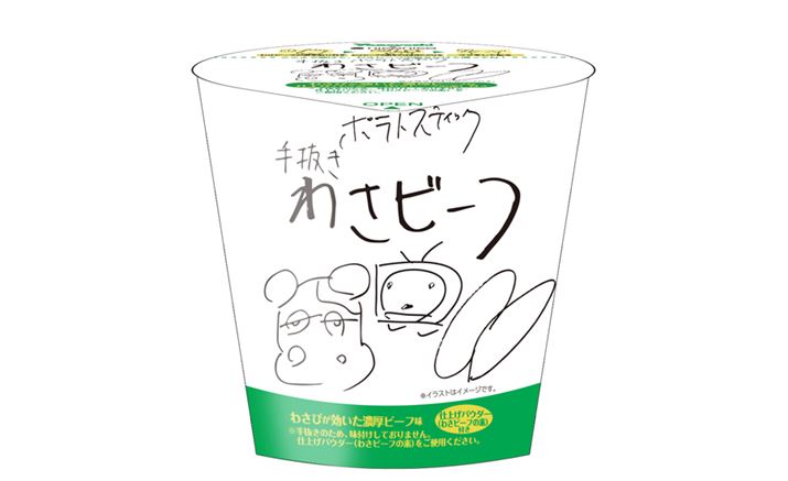 2016年のエイプリルフール企画として話題を呼び、4月の「ニコニコ超会議」で実際に限定販売された「手抜きわさビーフ」が、いよいよ一般発売されます。目をひくのは、山芳製菓の社員が描いた「脱力系」のパッケージデザイン。あまりのゆるさに、Twitter上では、「ざっくりしすぎw」や「センスやばいw」など、さまざまな声が上がっています。さらに、パッケージには、「手抜きのため、味付けしておりません」という文字が。そのまま食べると味が薄いので、付属の「仕上げパウダー」をかけて味付けするのを忘れずに。7月19日より、全国のローソンとポプラで限定販売されます。