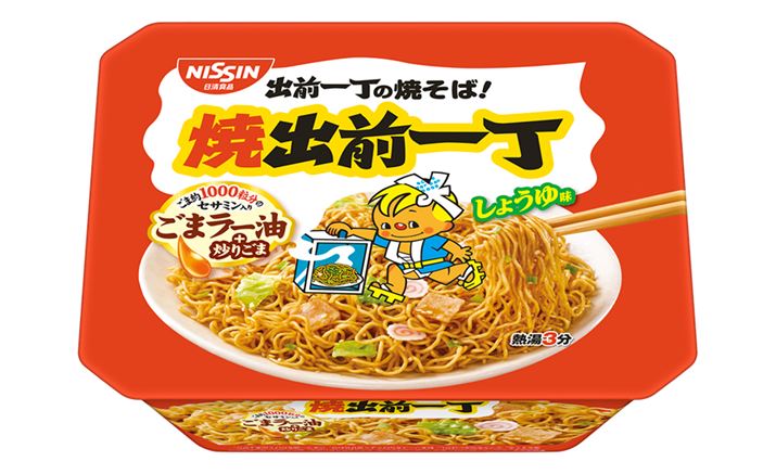 インスタントラーメンの老舗ブランド「出前一丁」で欠かせないのが、焙煎したごまの風味が香ばしい「ごまラー油」。この夏、限定発売される焼きそばタイプの「焼出前一丁」にも、ちゃんと「ごまラー油」が付いています。一食分に含まれるセサミン(ごまの成分であるゴマリグナンに含まれる物質。体内で肝臓の代謝を高め、抗酸化作用を持つようになる)の量は、「出前一丁」や「出前一丁どんぶり」と同様に、ごま約1000粒分。ソースは、「出前一丁」の味をイメージしたしょうゆ味です。食べる直前に、特製「ごまラー油」といりごまを加えれば、風味豊かなごまの風味が広がります。