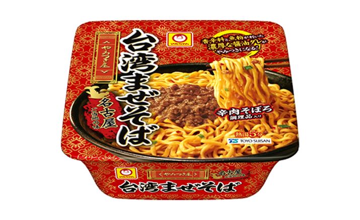名古屋のソウルフード「台湾まぜそば」は、極太麺の上に、鷹の爪とにんにくを効かせた醤油味のピリ辛ミンチを乗せた汁なし麺。この味をカップ麺で再現したのが「やみつき屋 台湾まぜそば」です。太くてモチモチとした食感の角麺に、にんにくや唐辛子、魚粉を効かせたポークベースの醤油ダレがよくからみ、気を許すと、すぐにやみつきになってしまうので十分にご注意を。具材の辛肉そぼろは、豆板醤(トウバンジャン)と甜麺醤(テンメンジャン)をバランスよくあわせた本格的な味わいで、これまたやみつきになってしまう危険性大!