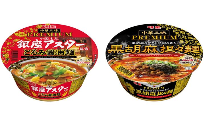 誕生から35年、長年にわたって親しまれているインスタント麺「明星 中華三昧」シリーズに、「明星 中華三昧PREMIUM」から「銀座アスター監修 とろみ醤油麺」と「黒胡麻担々麺」が登場。銀座アスター監修 とろみ醤油麺は、老舗の中華料理専門店「中国名菜銀座アスター」による監修のもと、味噌を隠し味にしたとろみのある醤油スープに仕上げた一品。コラーゲン2000mg入りです。黒胡麻担々麺は、ごまのコクと花椒の香りが際立つ濃厚な味付けで、胡麻約6000粒分のセサミンが入っています。これならば、健康志向の方も美味しくいただけるはず!