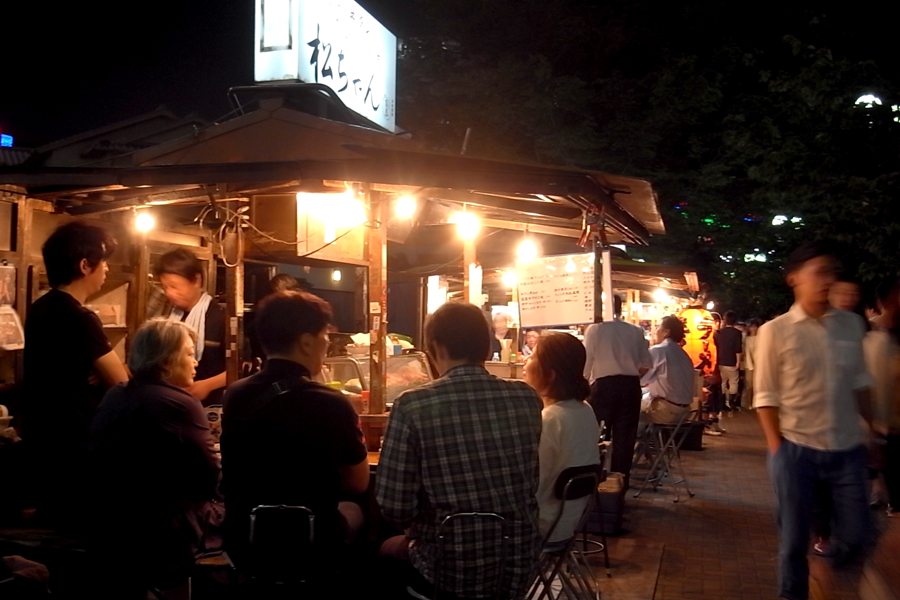 夜の天神。屋台のラーメン屋さんが軒を連ねます