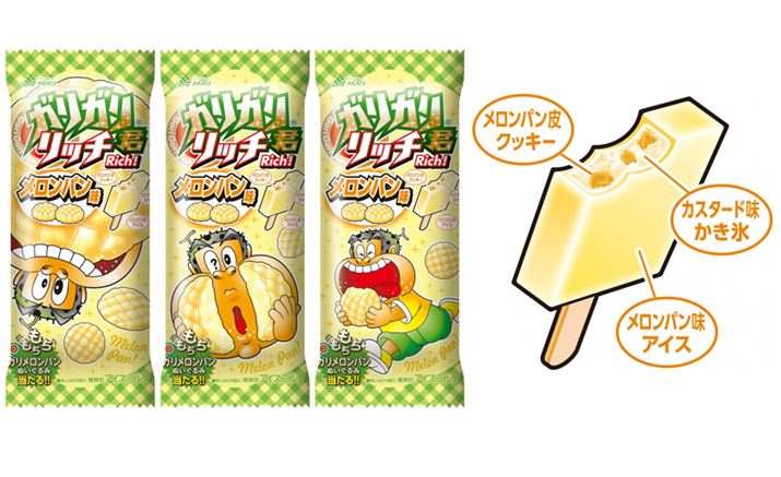 2014年3月に発売された「ガリガリ君リッチ ナポリタン味」。「とてもアイスとは思えない、斬新すぎる味」と話題になりましたが、残念ながら、3億円近い赤字を出す結果になったとのこと。このリベンジを果たすべく、また赤城乳業が新しい戦いを挑みました。今回発売する「ガリガリ君リッチ メロンパン味」は、焼きたての香ばしいメロンパンの風味を再現するため、メロンパン味のキャンディにローストしたバターを配合。さらに、メロンパンの皮(クッキー)とシャリシャリとしたカスタード風味のかき氷を混合しました。「ナポリタン味」に驚いた方も、そうでない方も、アイスからは想像できないこの食感をぜひお試しください。