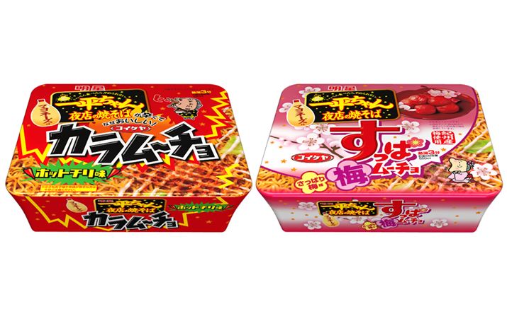 コイケヤの「カラムーチョ」と「すっぱムーチョ」が「一平ちゃん夜店の焼そば」とコラボ。マヨネーズのコクと刺激的な味わいがクセになる、ユニークな焼そばが誕生しました! 「カラムーチョホットチリ味」はスパイシーな辛さと旨さを効かせた醤油味、「すっぱムーチョさっぱり梅味」は梅の甘ずっぱい香りと強烈なすっぱさが楽しめます。いずれも、「一平ちゃん夜店の焼そば」特製のプレーンマヨネーズが付属!