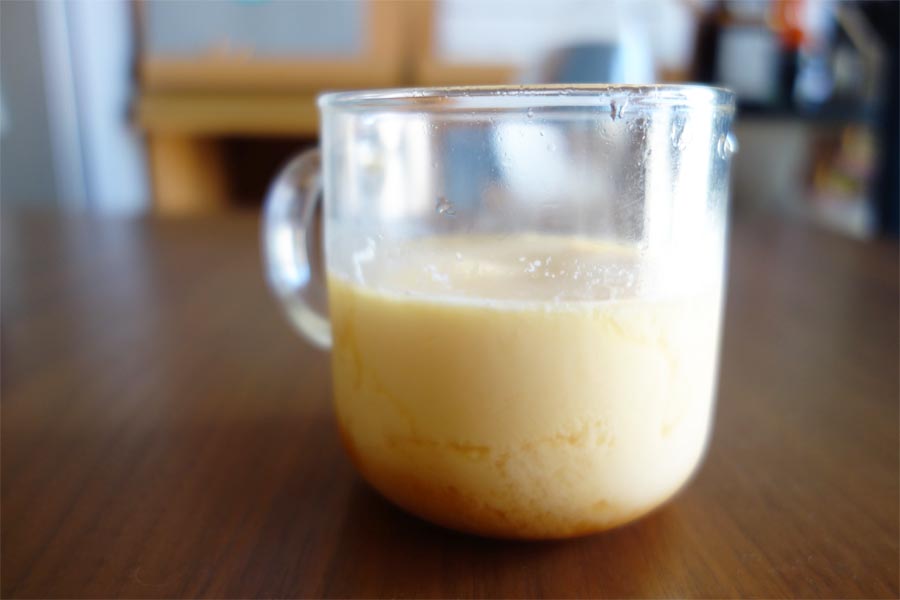 というわけで、いざ。このカラメルタブレットを使ってプリンを作ってみようではありませんか。といっても、前回と同じく土鍋でプリンはちょっと芸がないので、今回は別の方法でプリンを作ってみようと思います。こちらもネットで見かけたレシピですが、なんと「マグカップと電子レンジでプリン」です。