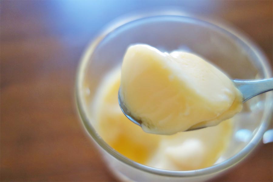 それでは…。スプーンを入れてみましょう。土鍋プリンのときもそうでしたが、この瞬間が一番ドキドキします。