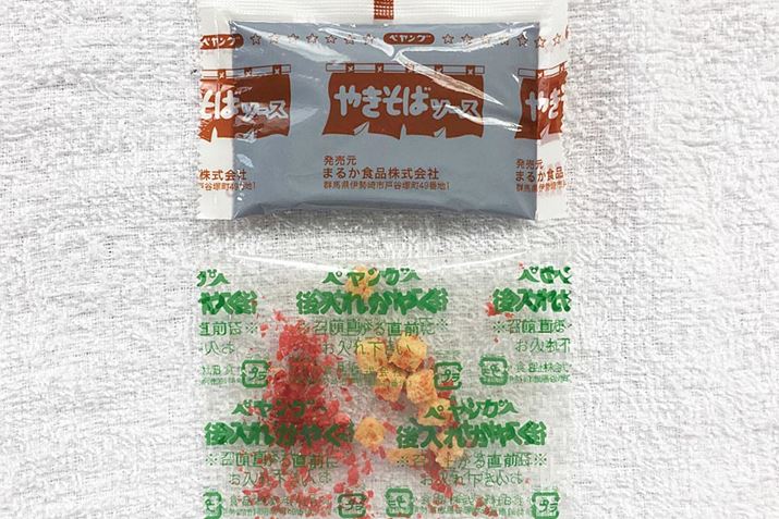 パッケージをはがすといつもの風景に、ちょっと安心。ちなみに、「ペヤング ソースやきそば」(左側)とは文字の色が違います