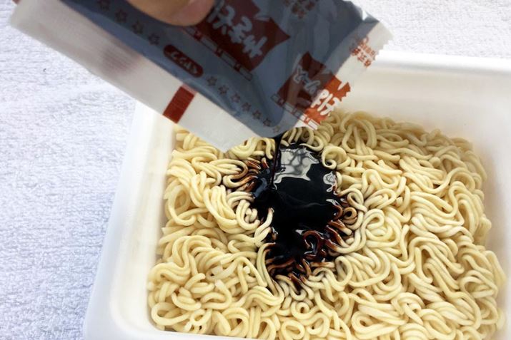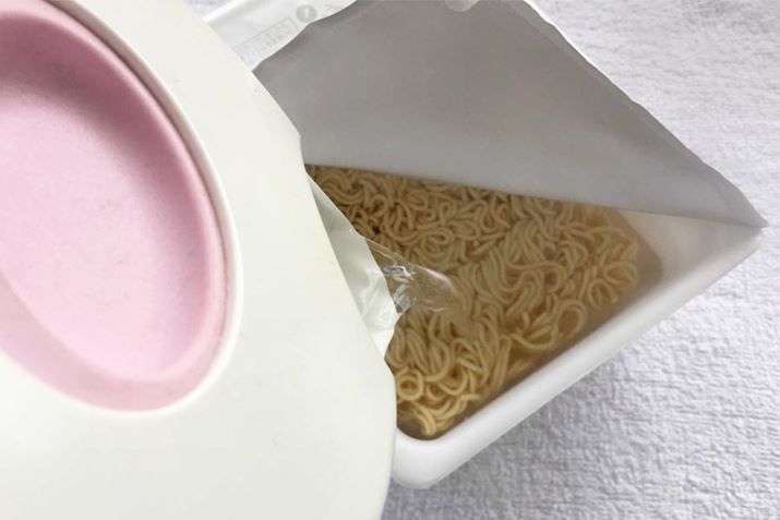 作り方は同じ。お湯を入れて3分待って、お湯を切ります