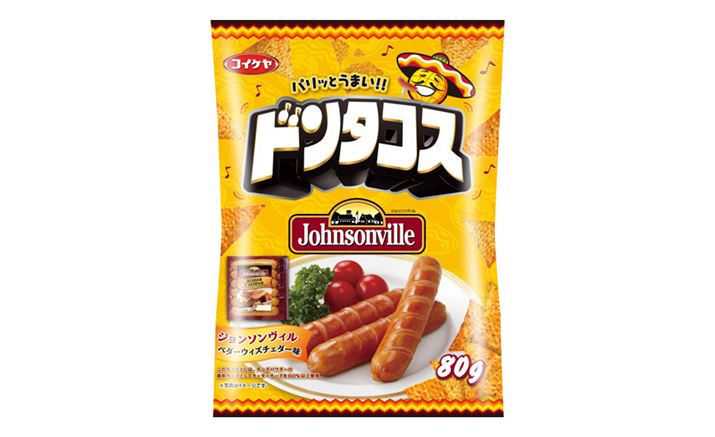 湖池屋の「ドンタコス」と、米ソーセージブランドの「ジョンソンヴィル」がコラボし、「ドンタコス ジョンソンヴィル ベダーウィズチェダー味」が誕生しました。スモークの香りとともに、あふれだすジューシーな肉汁に、チーズのコクと旨みがからみ合う「ジョンソンヴィル ベダーウィズチェダー」の味わいを、トルティアチップスならではのパリパリ食感で再現。香ばしいスモークの香りと、チェダーチーズの旨みが後を引くこの味を、ぜひお試し下さい。