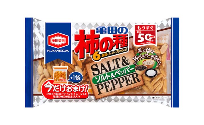 2011年2月に発売された「亀田の柿の種ソルト&ペッパー」は、「亀田の柿の種」期間限定シリーズの中でも、特に人気の高い商品。今年は、レモンをひと搾り加えたような、さっぱりとした味わいが楽しめる「亀田の柿の種ソルト&ペッパー」を期間限定で販売します。瀬戸内産のレモンパウダーを使用した酸味と、ピリッとしたペッパーの辛みは、想像以上に相性抜群! 後味がさわやかな「酸っぱ辛さ」がクセになりそう。