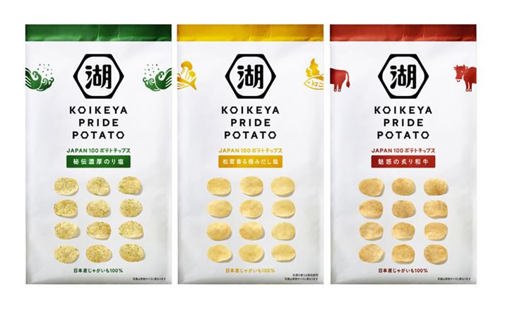 今回発売されたのは、「KOIKEYA PRIDE POTATO 秘伝濃厚のり塩」、「KOIKEYA PRIDE POTATO 松茸香る極みだし塩」、「KOIKEYA PRIDE POTATO 魅惑の炙り和牛」の3種類。見本品にはなぜか、湖池屋印の割り箸もついていました。箸で食べてほしい、ということなのでしょうか。