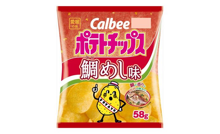 愛媛の名物はいろいろありますが、自身の母親が愛媛出身であるカルビーの商品企画担当者がイメージしたのは「鯛めし」でした。「鯛めしの味をポテトチップスで再現したい」と十数回の試作を繰り返し、ようやく完成したのが「ポテトチップス 鯛めし味」。鯛めしは、鯛を丸ごと釜に入れて、ごはんと一緒に炊き込むという豪快な料理。その独特の味と香りを再現するため、今回の新製品では、焼鯛パウダーを使用しました。袋をあけるとふわっと上品な鯛の香りが広がり、口に入れると、魚介だしのやさしいうまみが広がります。なお、この製品は2月6日よりコンビニで先行販売していましたが、それ以外でも販売されるのは13日以降。数量限定で、売り切れ次第終了とのことですので、食べてみたい方はお早めに。