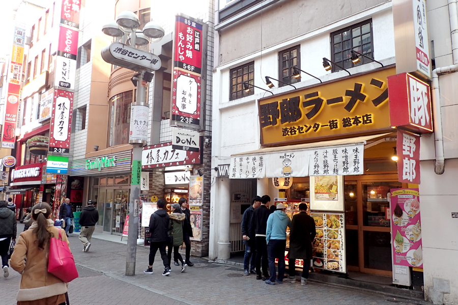 渋谷センター街のど真ん中に店舗を構える「野郎ラーメン 渋谷センター街 総本店」