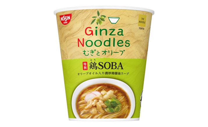 「むぎとオリーブ」は、カフェのようなオシャレな店構えと、オリーブオイルで仕上げたヘルシーなラーメンで、女性を中心に人気を集めているラーメン店。日清食品がラーメン店とコラボした「日清 THE NOODLE」第6弾として発売するのは、このむぎとオリーブの味を再現した「むぎとオリーブ 特製鶏SOBA」です。店主・岩田圭介氏監修のもと、丸鶏をじっくり煮込んで作った透き通ったスープに、丸大豆醤油を使用した醤油ダレを合わせ、鶏と醤油のうまみを凝縮した人気No.1メニューの「鶏SOBA」の味わいを再現します。仕上げに、オリーブオイル入り特製鶏油ダレを加えることで、香りと深みがより一層アップするのもポイント。