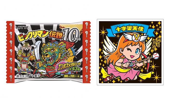 「ビックリマンチョコ」シリーズに新たな製品が登場! 今回発売するのは、「野聖エルサM」「魔スターP」「聖梵ミロク」が登場する旧第12弾「ビックリマン伝説10」の復刻版。封入されるシールの絵柄は、復刻シール39種とシークレットシール4種類の合計43種類を用意します。なお、シークレットシールは、“ビックリマン終身名誉PR大使”の里崎智也さん(元千葉ロッテマリーンズ)がプロデュースした人気キャラクターを、ビックリマンイラストレーターが描き下ろしています。こちらの新しい取り組みにも注目です!