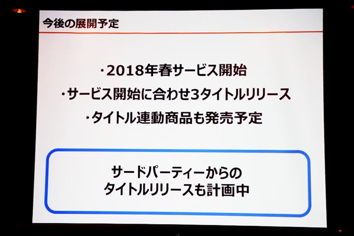 来年春には3タイトルのリリースだけでなく、タイトル連動商品の発売やサードパーティからのタイトルリリースの計画も進めているという