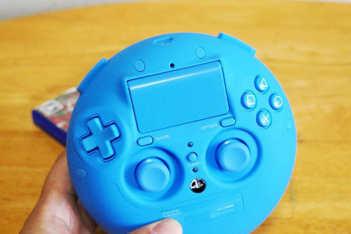 操作ボタンなどは底面に搭載されています。左スティックと右スティックの間にある「TURBO」ボタンは連射機能に対応しており、「○」ボタンを連射させればレベル上げ時に役立ちそう