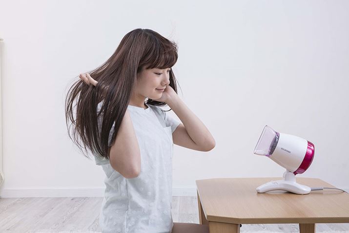 ドライヤーの使用時間を有効活用できるという、置き型ドライヤー。自立する「置き型」を採用することで、ドライヤーをしている間も自由に両手を使えるため、髪を乾かしている時間をスマートフォンの操作や読書、スキンケアやネイルなど、ほかの作業にあてられるという。