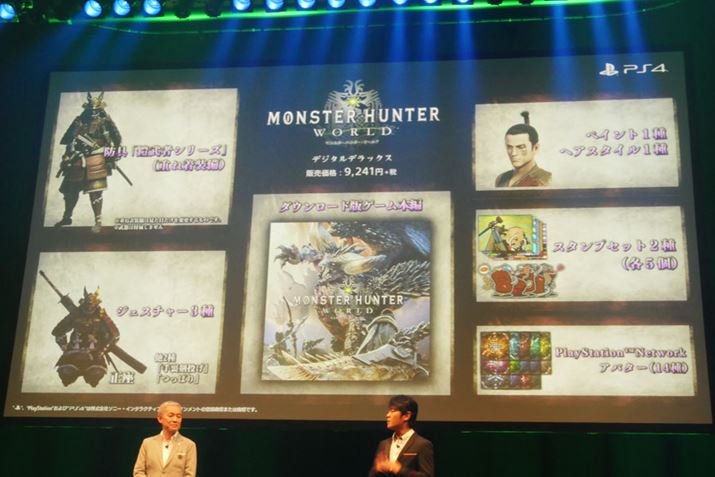 イベントの目玉は、PlayStationに久々に帰ってくるカプコンの「モンスターハンター:ワールド」。価格はパッケージ版が8,980円(税別、以下同)、ダウンロード版が8,315円。発売日が明らかになったほか、パッケージモンスターの「ネルギガンテ」、数量限定で発売される「PlayStation 4 Pro リオレウス エディション」などが公開された。