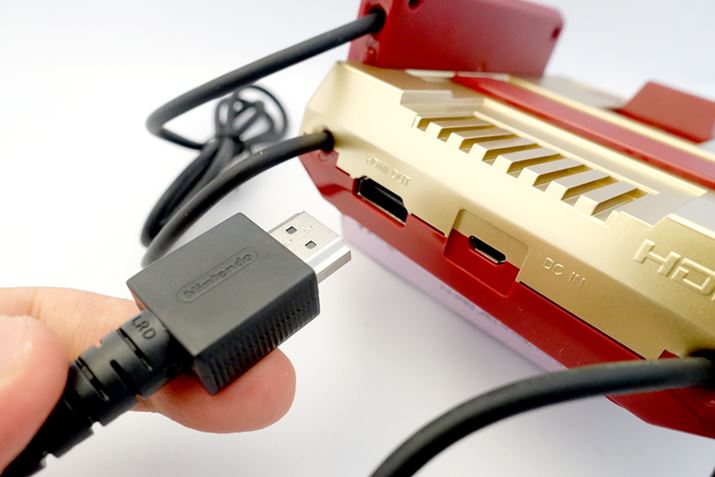 ミニファミコンと変わらない点、その3。テレビや液晶ディスプレイとの接続も、ミニファミコンと同様に、HDMIポートを使用します。ファミコンのRF接続や、ニューファミコンのコンポジット接続ではありません
