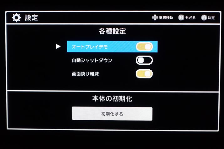 ミニファミコンと変わらない点、その6。「画面」アイコンを選択して、「オートプレイデモ」や「自動シャットダウン」、「画面焼け軽減」を設定できます。ゲームのプレイ中にリセットボタンを押すと作成される「中断ポイント」の数も、最大4つと変わりません。よく見ると「スーパーマリオ」ではなく、「ドラゴンボール 神龍の謎」の画面が使用されています