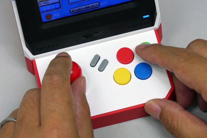 個人的な見解はさておき、「ネオジオミニ」の特徴を紹介しましょう。アーケードゲーム機をそのまま小さくした3.5型液晶搭載の本体には、ネオジオの名作ゲームが40本収録されています。専用のゲームパッド「NEOGEO mini PAD」を使えば2人対戦プレイが可能で、mini HDMIケーブルを使えばテレビにも出力できます。
