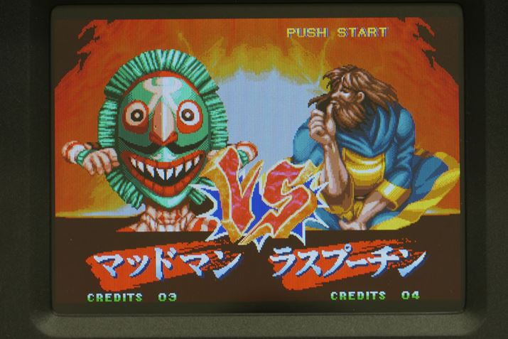 液晶やコントローラーは小さいものの、思ったよりプレイしやすい印象です。不思議なもので、各キャラクターの必殺技コマンドなど忘れていると思っていたのですが、プレイしているうちに段々と思い出してきました。