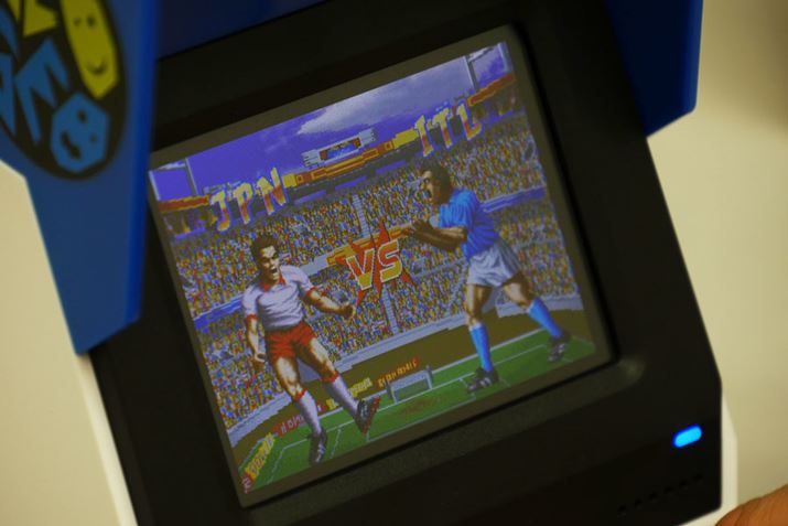 本体は、当時のアーケードゲーム機と同じく青、白、赤を基調としたデザイン。自宅のインテリアにもできそうなくらい神々しいデザインです