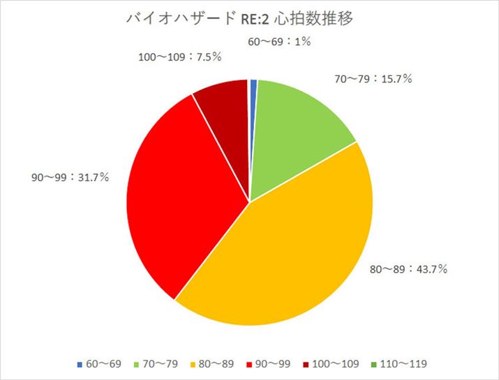 「バイオ RE:2」の心拍数推移。縦軸が心拍数、横軸が経過時間を表します