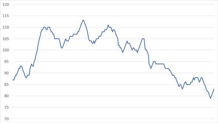 筆者の安静時心拍数は73ですが、グラフでは73以下の状態がほとんどありません。ゲーム開始時は緊張していたのでしょうか、速攻で100を上回っていました。プレイ中の平均を計算してみたところ、87.4という心拍数を記録し、プレイ中は常にと言っていいほど、通常より高い心拍数で推移していたことがわかります。