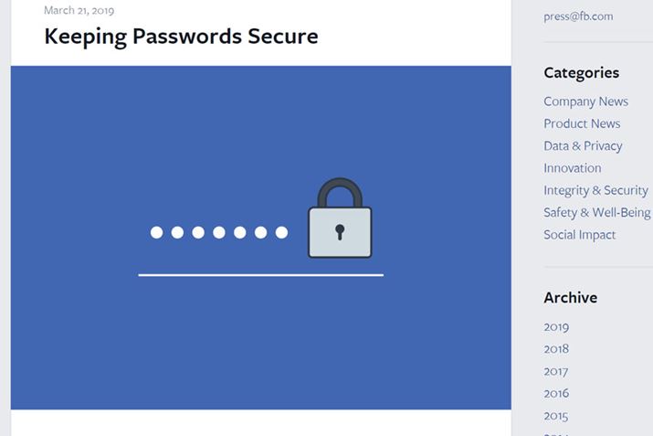 2018年に5000万人分のユーザー情報を流出させ、そのセキュリティ管理が批判されていたFacebookが、数億人分のパスワードを平文(プレーンテキスト)で保存していたことを公式ブログにて明らかにしました。