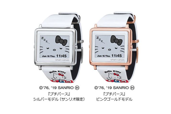 エプソンから、電子ペーパー腕時計「Smart Canvas」の「Hello Kitty」シリーズとして、「Hello Kitty」の誕生45周年を記念したモデル「'70年代プチパース シルバー」(サンリオ限定)と「'70年代プチパース ピンクゴールド」が発売される。