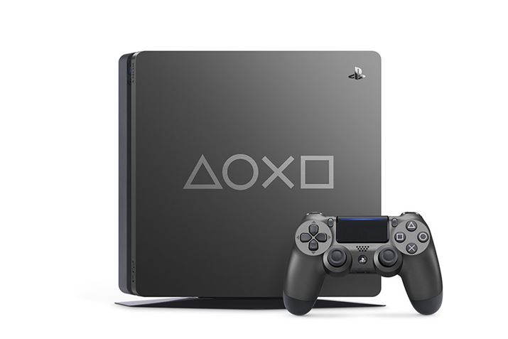 PS4本体の天面に高級感のあるスチール・ブラックを採用し、素材のなめらかな質感を表現したモデル。底面に濃いグレーを用いることで2層のコントラストを引き立たせ、天面中央には上品なヘアライン加工を施したシルバーの「△◯×□」のロゴがデザインされている。