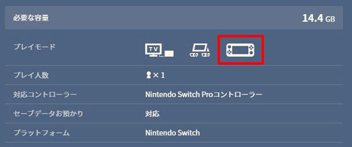 スイッチライトのゲームを購入するときは、パッケージの裏側、もしくはニンテンドーeショップやマイニンテンドーストアのソフト情報ページで、「プレイモード」の欄に携帯モードのアイコン(赤枠)が表記されているかを確認してください(画像はマイニンテンドーストア、「ゼルダの伝説 ブレス オブ ザ ワイルド」購入ページより)