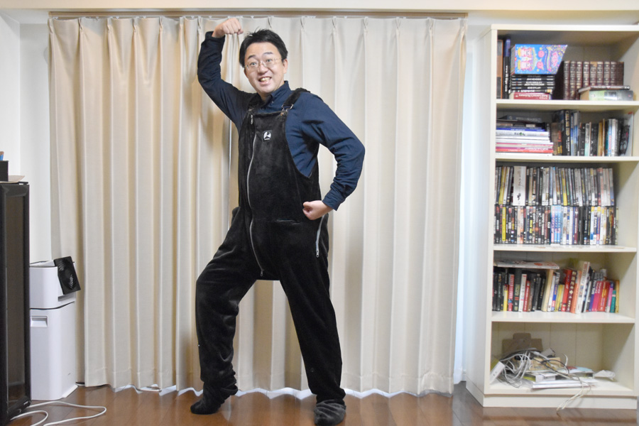 さらに、つなぎ服のような形をしているので、保温性も抜群。腰ゴムがないので、締めつけられているような感覚もなく、完全にストレスフリーです。そのため、完全防備の状態で床に寝転がると、まるで、布団の中にもぐっているような感覚に陥ります。