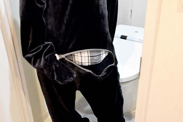 ちょっと恥ずかしい写真! 着たままトイレシステム5.0のおかげで、トイレに行く時も、いちいち服を全部脱ぐ必要がありません