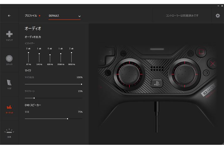 ソフトウェアで設定できる項目はマッピング、スティック、トリガー、オーディオ、効果の全5項目です。
