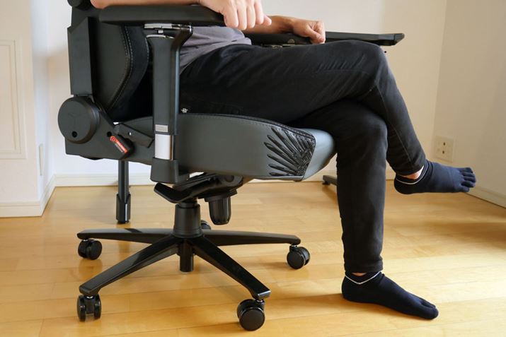 座面が平面なのもポイントが高いですね。普通に座っているときに、足を組んだり、あぐらをかいて座りたいときってありますよね。そういった姿勢でも、平面な座面は快適な座り心地です。座面の左右がせり上がっているタイプだと、座面が少し狭くてじゃまに感じることがあるのですが、そういったことも感じませんでした。